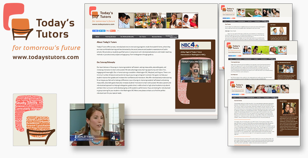 Today’s Tutors offers private, individualized one-on-one tutoring programs inside the student’s home, where they are most comfortable learning and less distracted by the social pressures and academic expectations of public schools. They provide their students qualified tutors in conjunction with individualized attention and modern teaching methods in just about every subject and age group, from kindergarten through grade 12. We were asked to create a logo, edit an news interview with the founder and create a website.